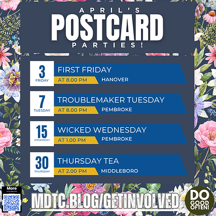 The troublemakers are doing voter outreach on a monthly basis. Voter outreach takes many different forms, including sign holding (Click here​) and postcard parties (Click here​). The good troublemakers would love to have your help. Click the corresponding image below to get the full list of events.